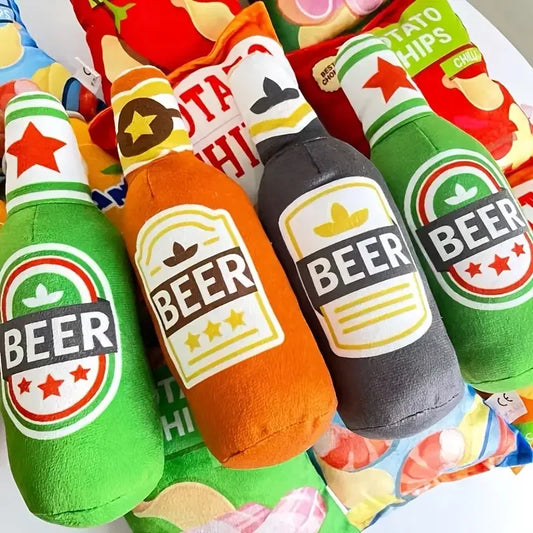 Interactive Dog Toys Champagne Wine Bottle Shape Pet Toy Plush Filled Vodka Toy Squeaky Bite-Resistant Pet Supplies Whisky