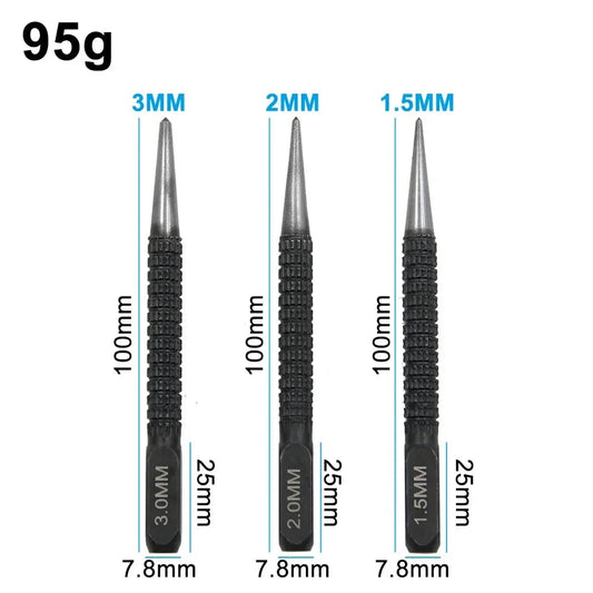 3PC Center Punch Positioning Fixer Black Cylindrical Nail Punching Pin Drilling Tool Accessory Set