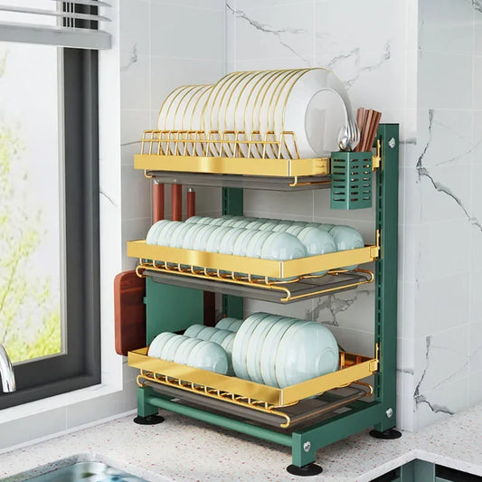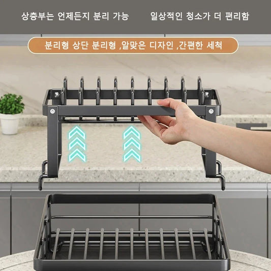 2/3 Tiers Escorredor de pratos Suporte de secagem com bandeja ajustável Organizador de balcão de pia de cozinha Prateleira de armazenamento Talheres Tábua de escorrer