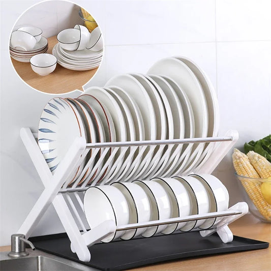 Escorredor de pratos Pratos Dobrável Prateleira de camada dupla Organizador de cozinha Suporte para tampa de panela Escorredor de pratos Pia Tigela de drenagem Suporte de armazenamento