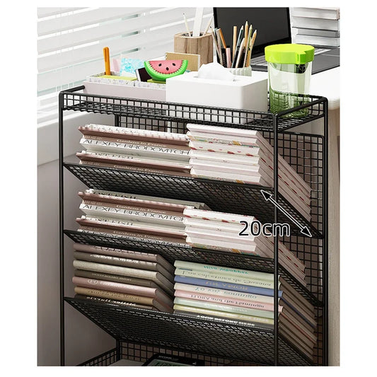 Organizador de mesa Estante móvel de 5 camadas Armazenamento multifuncional Prateleira de ferro para livros sob a mesa Móvel para casa Escola