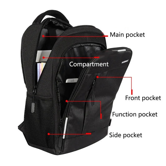 Mochila para laptop de 14/15,6 polegadas Mochila de negócios simples multifuncional masculina Aprovada pela companhia aérea Bolsa de mão de cabine preta