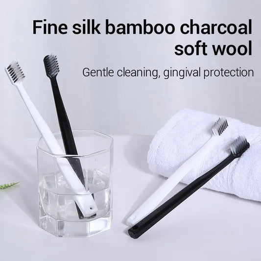 10PC Escova de carvão de bambu Escovas de dentes de cerdas macias de seda, preto e branco Escovas de dentes para adultos MASCULINOS E FEMININOS, conjunto familiar