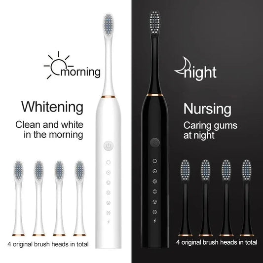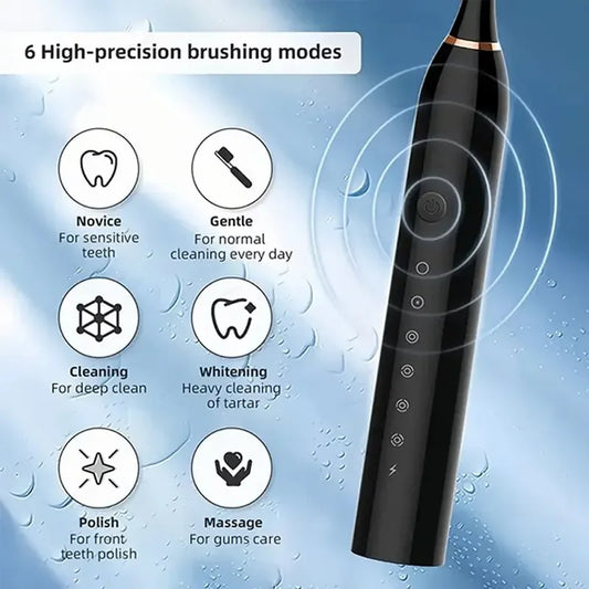 Escova de dentes elétrica ultrassônica com seis modos de velocidade, para casa, cabelo macio, carregamento USB, à prova d'água, limpador de dentes adulto, conjunto automático para casais