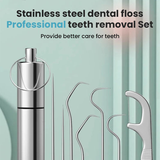 Artefato de palito de dente de aço inoxidável, conjunto de crochê dental, ferramenta de coleta dental, plugue dental, artefato, agulha de fio dental portátil