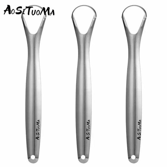 2Pcs Raspador de Língua Aço Inoxidável Limpador de Língua Remoção de Mau Hálito Ferramentas de Cuidados Orais