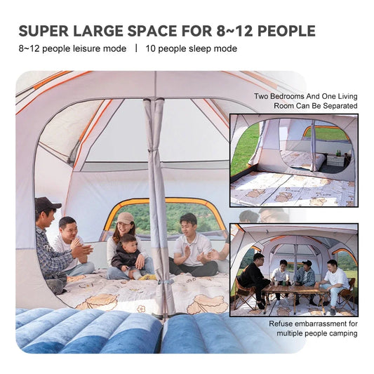 4-12 Pessoas Camping Ao Ar Livre Tendas de Luxo Grande Família Tenda Com Quartos À Prova D'Água Dois Quartos e Uma Sala de estar Design