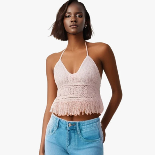 Mulheres Verão Curto Top Pendurado Pescoço Pequeno Regata com Cinta Pendurado Inner Lacing Shoulder Strap Almofada Peito Abert