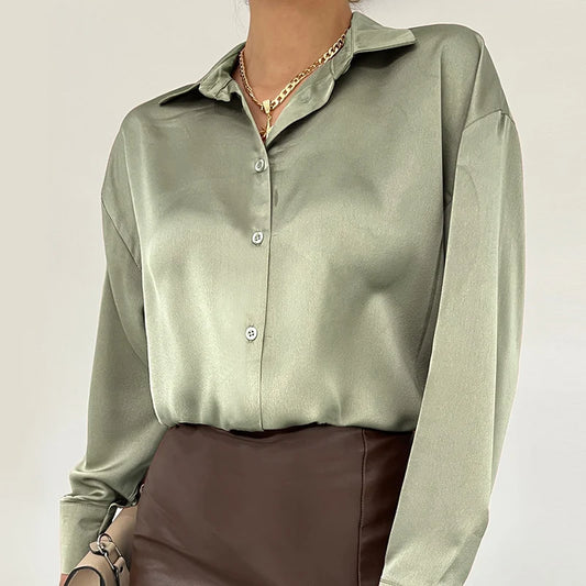 Nova camisa de cetim de manga comprida feminilidade avançada sentido luz luxo 2024 primavera/verão sol respirável fino retro ins tops