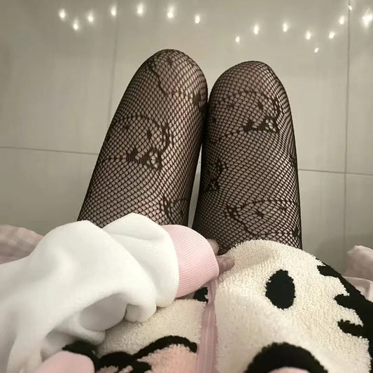 Meias Sexy Hello Kitty Respiráveis Meias Pretas Sanrio da Moda Meias Sexy Lolita Meias Estilo Kuromi Anime Meias Arrastão