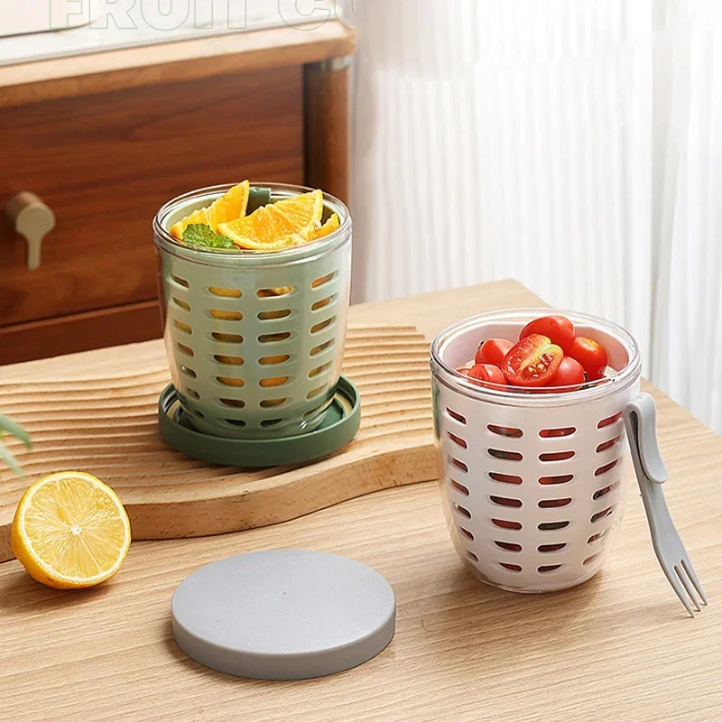 1PC Copo de Frutas Gotejador com Garfo de Qualidade Alimentar Estudante Portátil Balde de Armazenamento de Piquenique Copo de Plástico Selado À Prova de Vazamento Copo de Salada