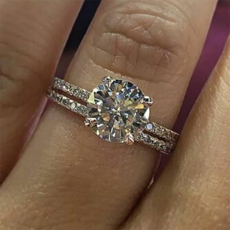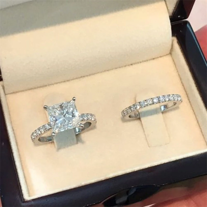 2 peças/conjunto de anéis de pedra de zircônia AAA de cristal de luxo femininos para mulheres, anéis de casamento da moda para mulheres, anéis de amor