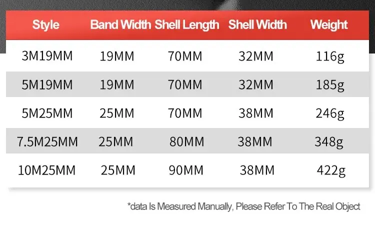 • Multiple Measurement Ranges :With a measurement range of 3m, 5m, 7.5m, and 10m, this tape measure is versatile and can be used for a variety of projects.
