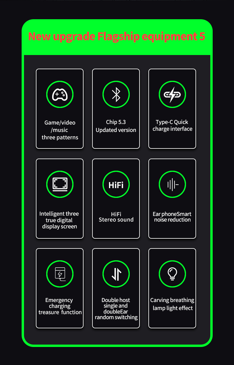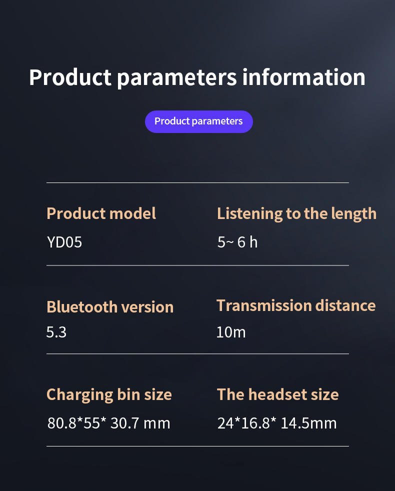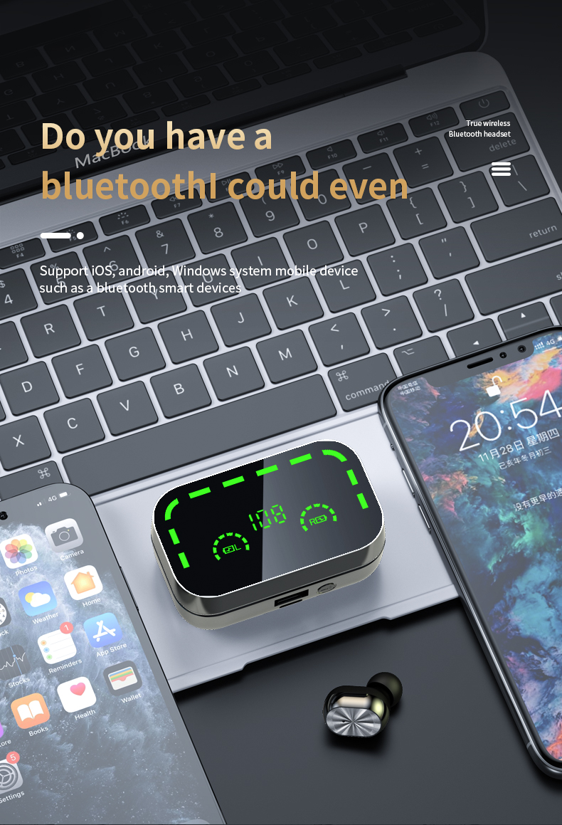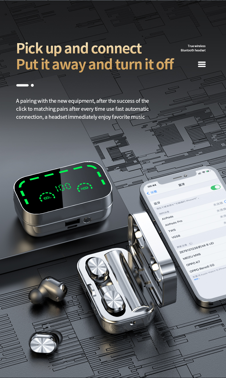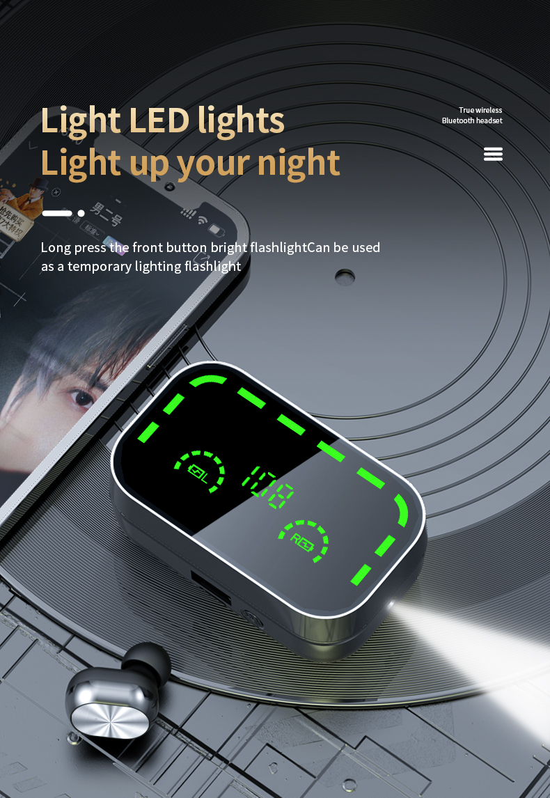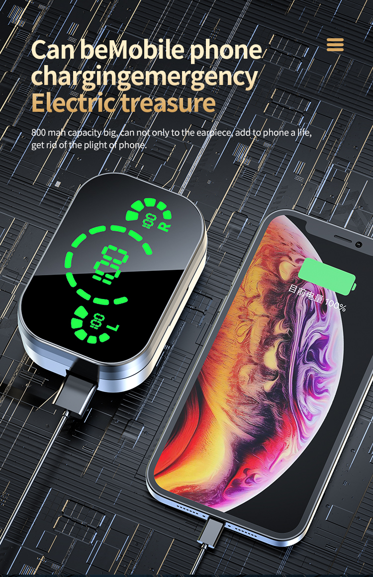5.3 Fones de ouvido sem fio Bluetooth com tela LCD grande TWS Fones de ouvido com banco de energia YD05 Fone de ouvido com microfone para iPhone Android