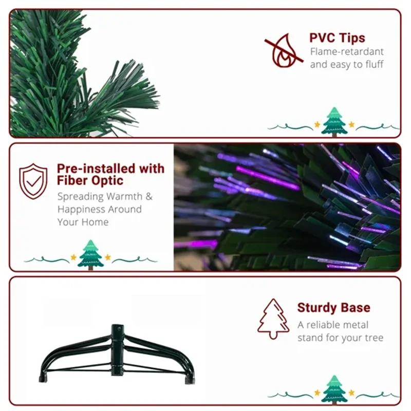 6ft/5ft Top With Stars PVC Material Fiber Optics 36 Lights With Snowflakes Colorful Color Change 230 Branches Christmas Tree Green