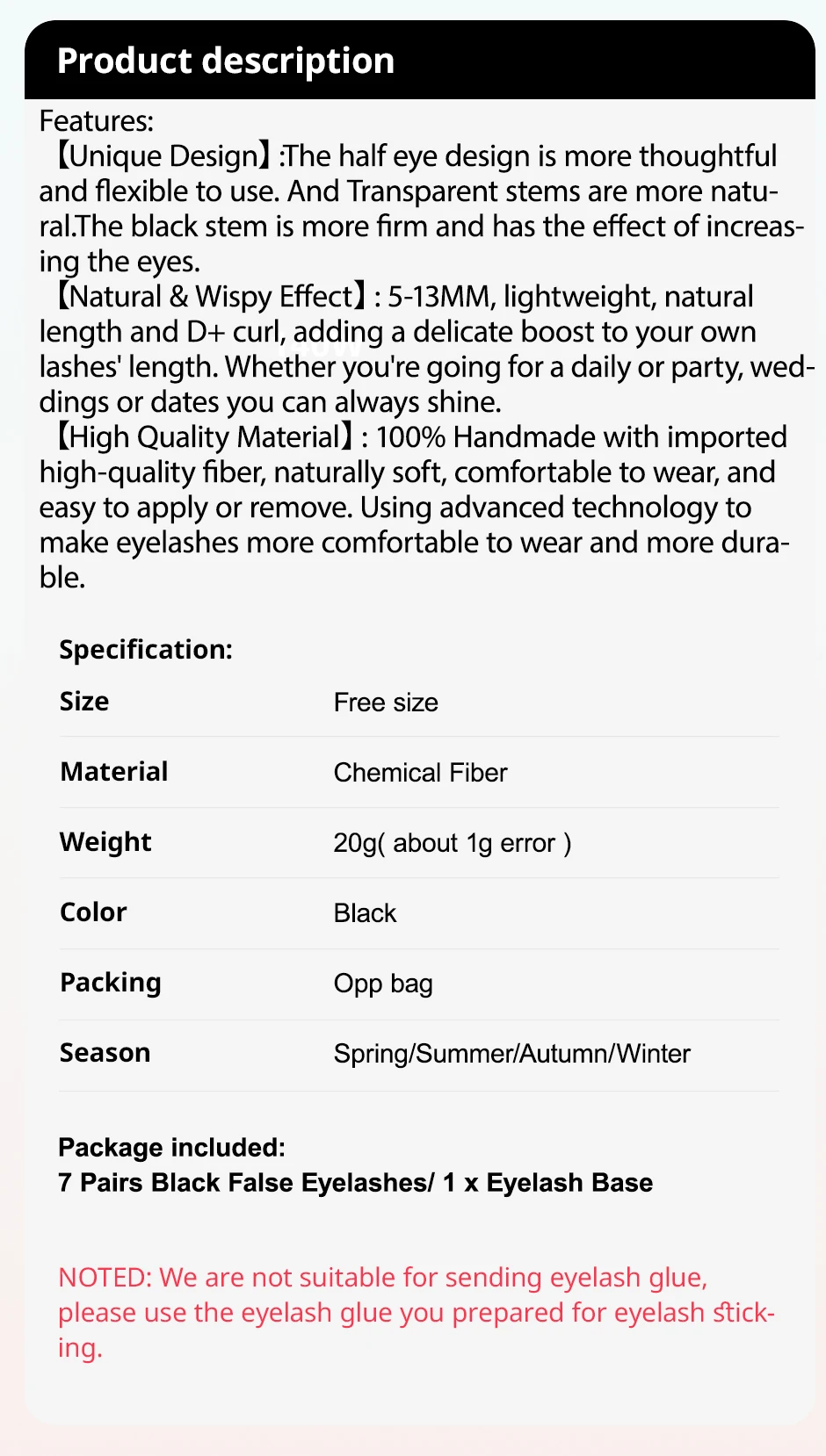 7 pares de cílios postiços longos e finos, naturais, de haste transparente 3D, cílios postiços curtos estilo olho de gato