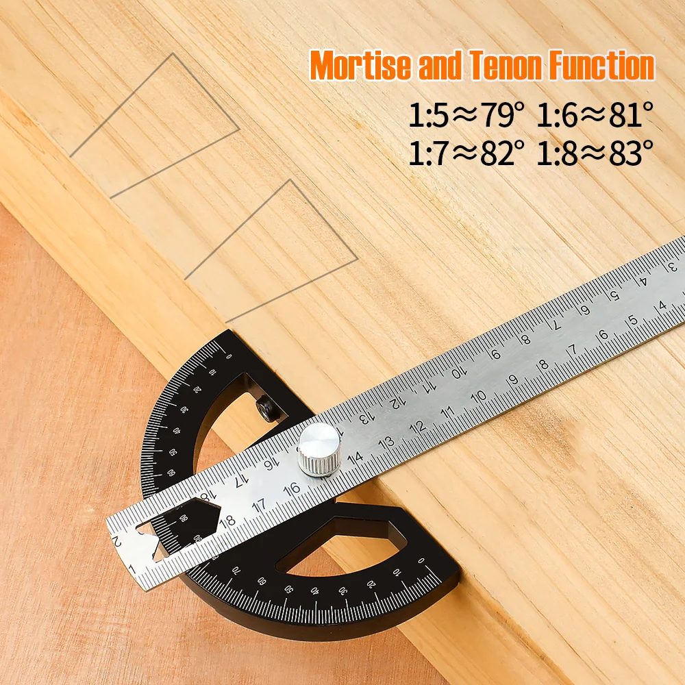 Multifunctional angle gauge: Ruler and Angle measurement,Disassembly free combination,Metric and Inches double scale,Mortise and tenon function
