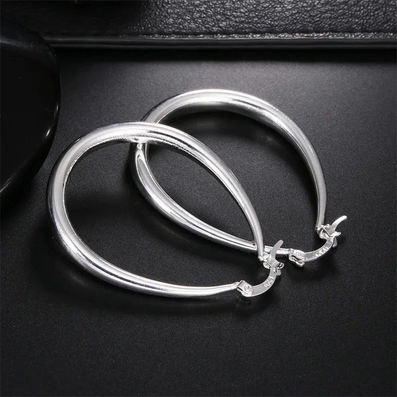 Brincos de argola grandes de círculo liso de prata esterlina 925 41 mm para mulheres, acessórios de festa de moda, joias, presentes de Natal