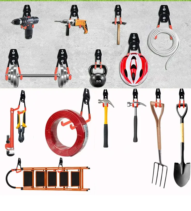 Heavy Duty Storage: Made of high-quality steel, these garage hooks are strong enough to hold heavy items like garden tools, ladders, bikes, and bulky items.