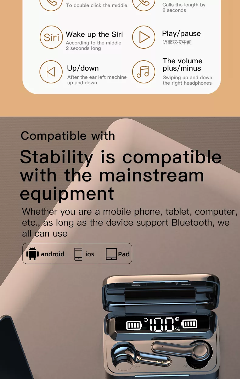 BQ20 Tws Fone de ouvido Bluetooth sem fio Fone de ouvido Hifi Estéreo Jogos esportivos Fone de ouvido à prova d'água Fone de ouvido Audição com microfone PK M10 F9 E6S