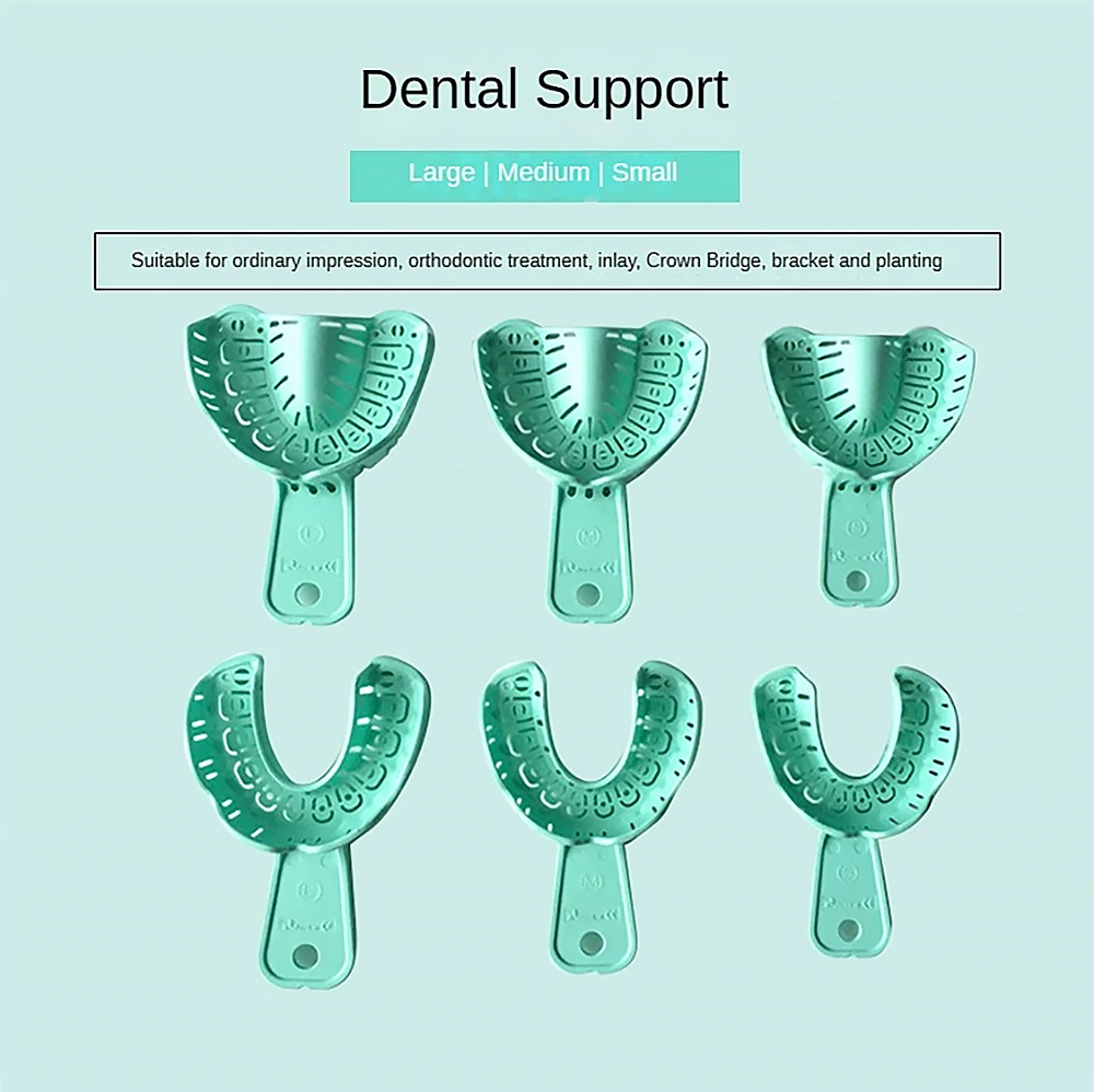 Denspay 6Pcs/Set Bandeja de plástico para impressão dentária S/M/L Bandeja para implante dentário Bandeja de molde parcial removível para boca cheia Fácil de dobrar