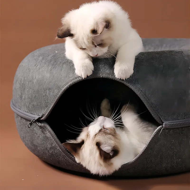 Cama de gato donut, túnel para gatos de estimação, brinquedo interativo, cama para gatos, brinquedo de uso duplo para ambientes internos, equipamento esportivo para gatinhos, brinquedo de treinamento para gatos, casa para gatos