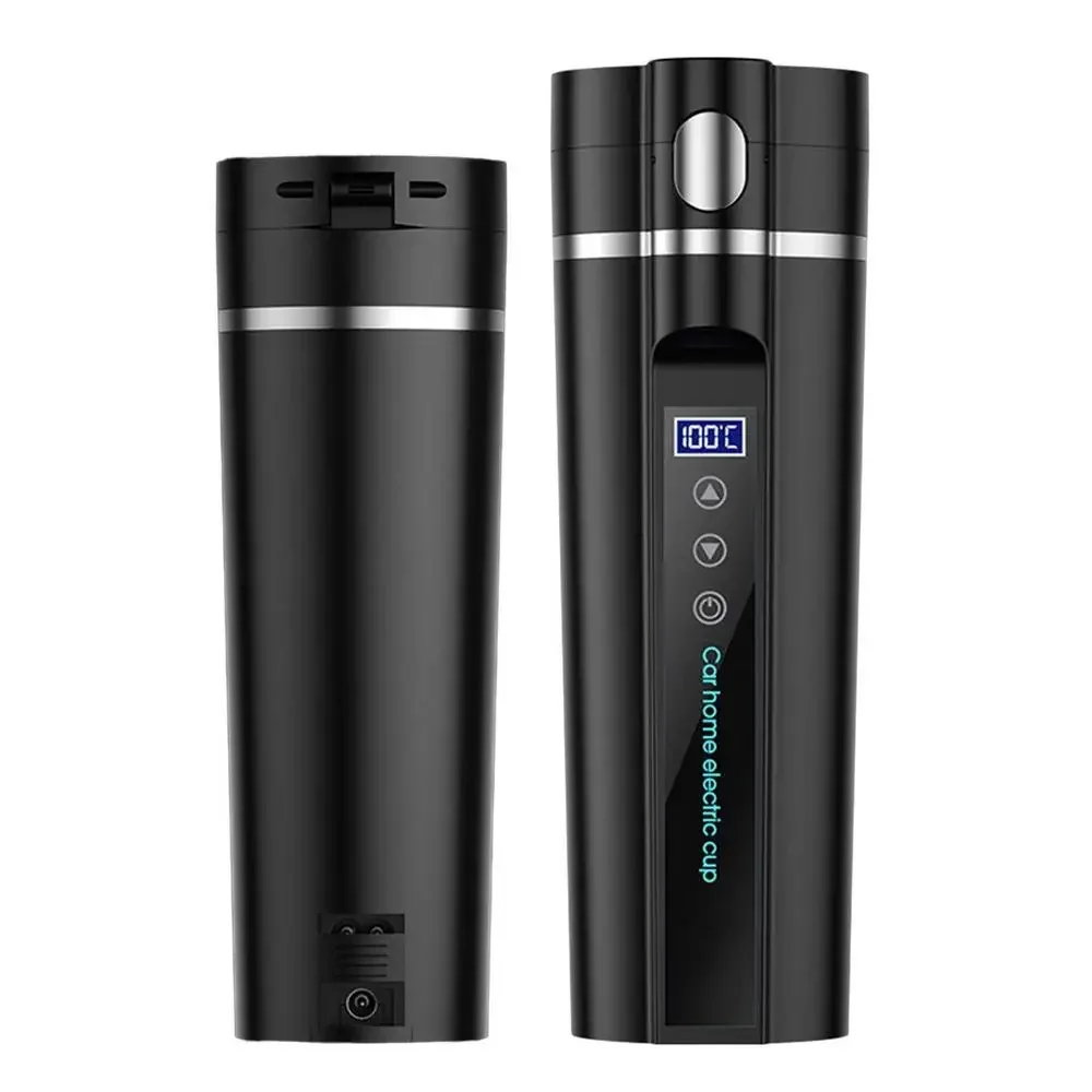 Caneca de chá elétrica para carro, aquecimento automático, copo térmico, 450ml, controle de temperatura inteligente, caneca de viagem, forro de aço inoxidável 304
