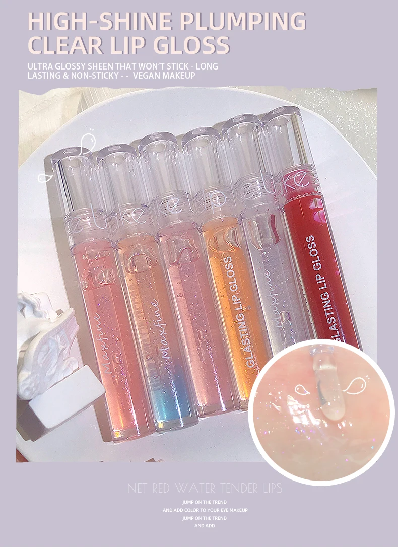 Brilho labial de vidro rico em microbrilho hidratante espelho brilho labial
