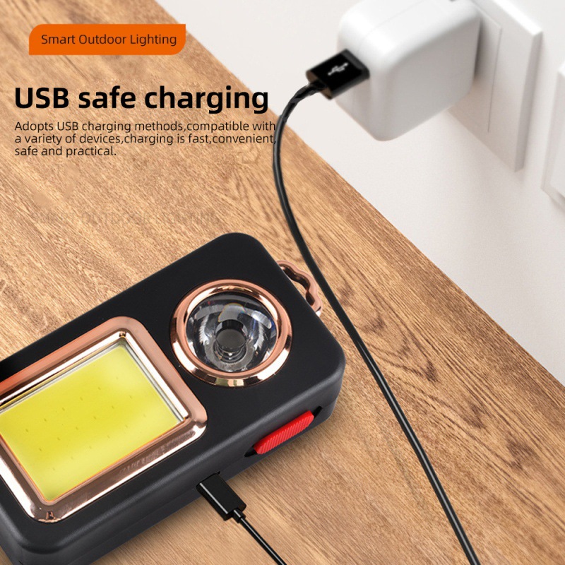 Chaveiro Luz de Manutenção Multifuncional Lanterna de Emergência USB Recarregável Barraca Luz de Acampamento Cob Luz de Trabalho