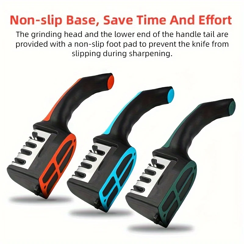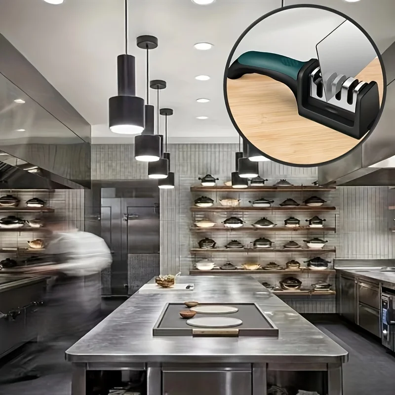 Afiador de facas de cozinha 3/4 segmentos multifuncional doméstico portátil trifuncional preto com fundo antiderrapante pedra de afiar