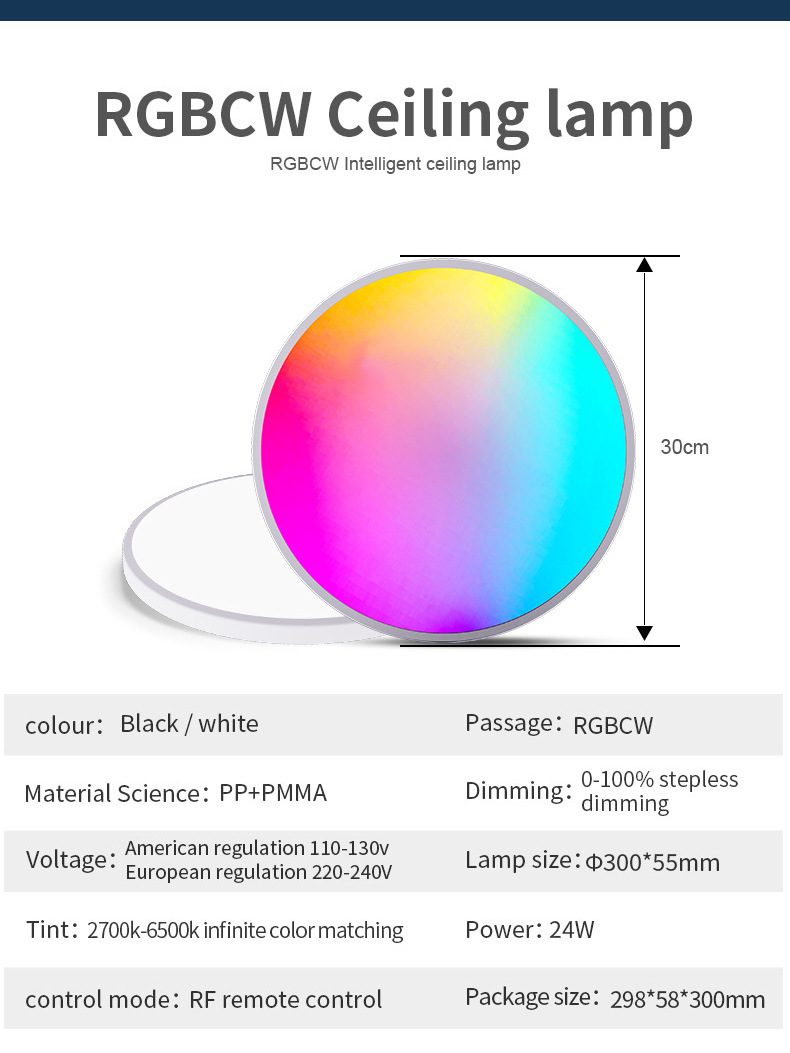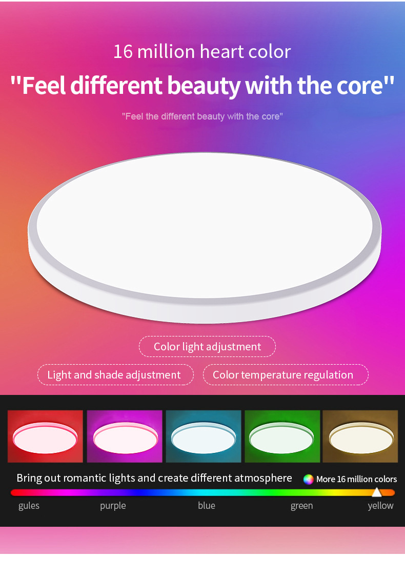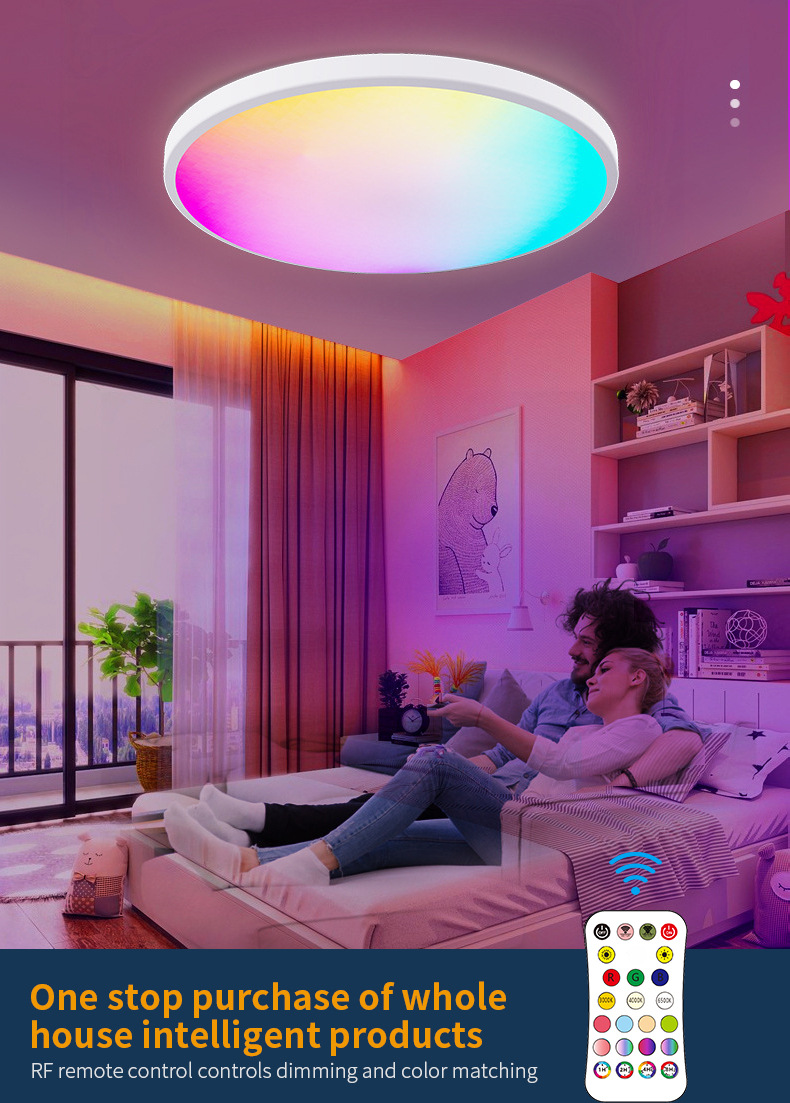 Nova lâmpada de teto RGBCW Full Color Dimming e ajuste de cor Intelligent Graffiti APP Bluetooth Voice Lâmpada de teto