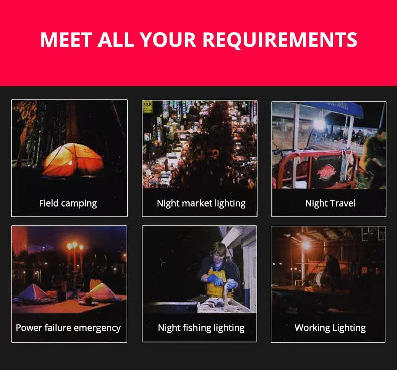 Nova iluminação externa Led multifuncional para barraca de acampamento, lâmpada com carregamento USB, lanterna de emergência, holofote, lâmpada portátil
