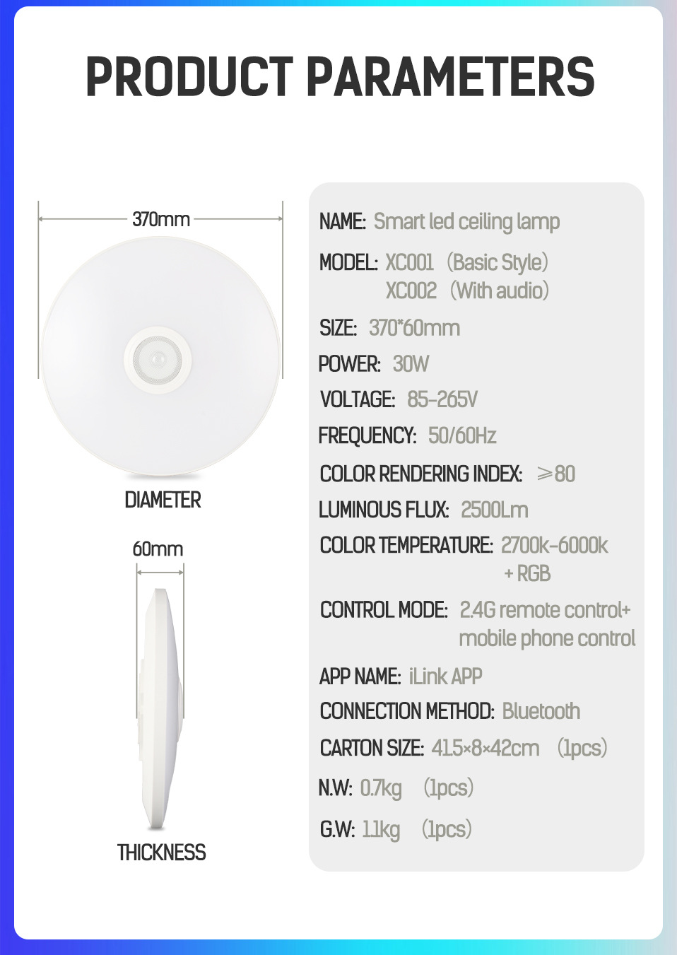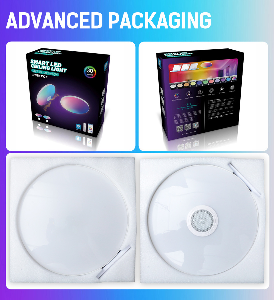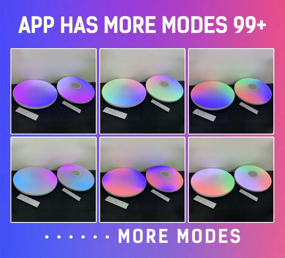 Nova luz de teto LED colorida RGB com aplicativo inteligente escurecimento de três luzes de defesa Bluetooth música ambiente luz