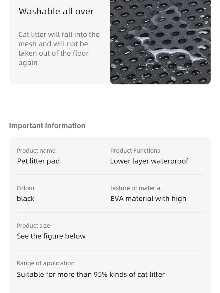 • Adequado para gatos: projetado especificamente para gatos, este tapete é perfeito para fornecer uma área limpa e confortável para seu amigo felino.