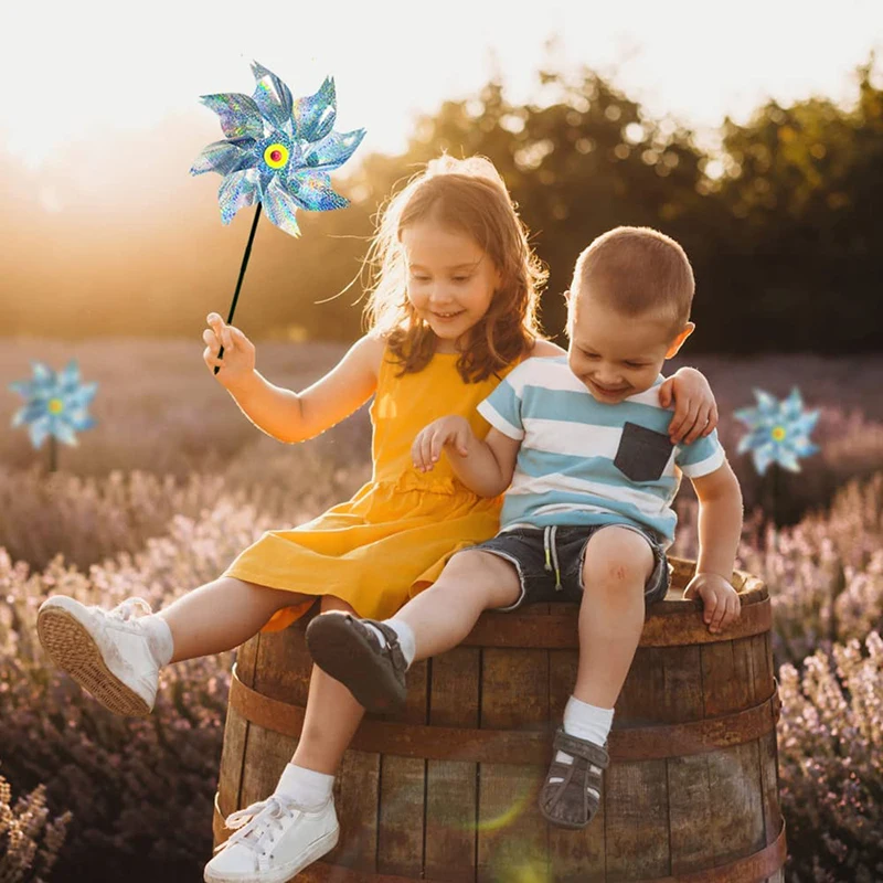 Repelente de pássaros Silver Laser Silver Windmill Moinho de vento giratório de 8 lâminas para fazenda, propriedade, repelente de pássaros ao ar livre