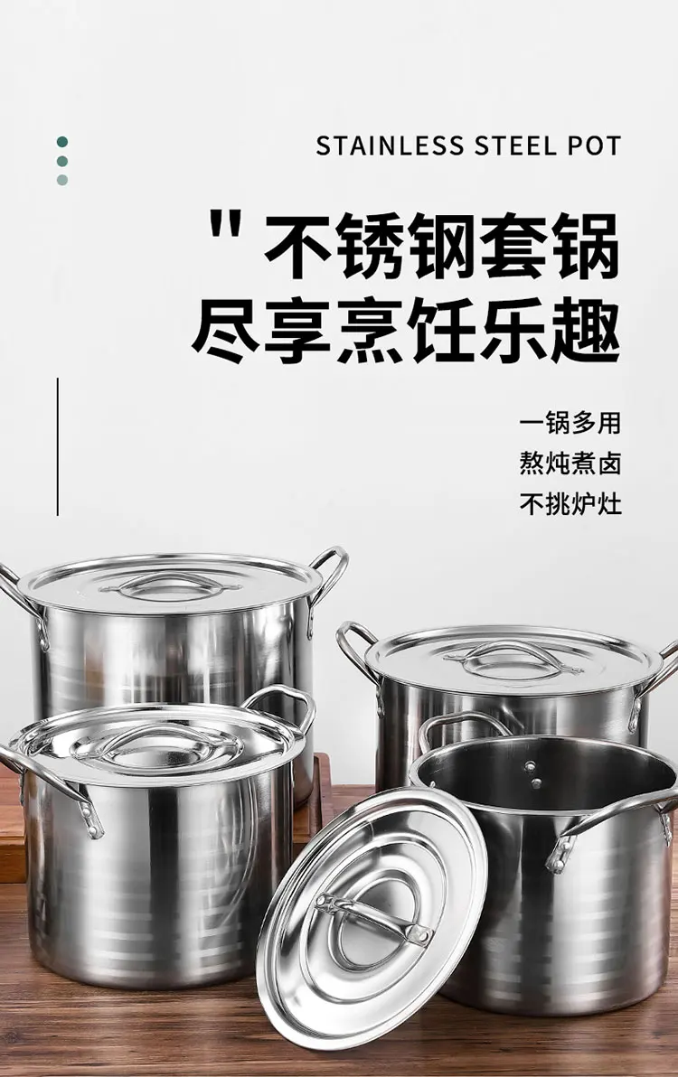 Stainless Steel 24/26/28/30cm Big Stockpot Commercial Kitchen Cooking Pots Cookware Stock Pots